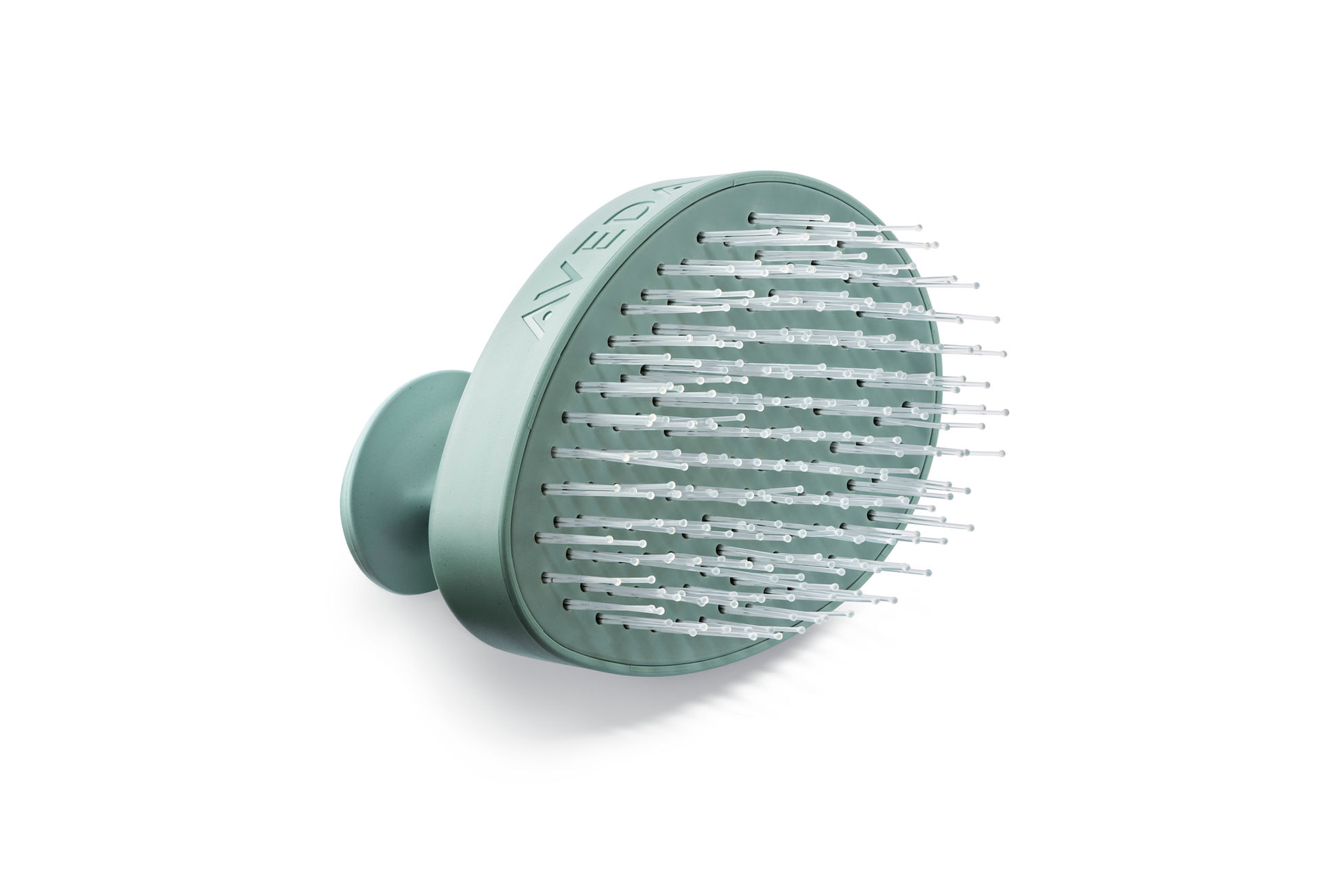 Dizainas: ploni, ilgi šereliai yra lankstūs ir pasiekia galvos odą per drėgnus plaukus. Dviejų lygių gijos leidžia ilgesnėms gijoms paliesti galvos odą, o trumpesnėms – plaukus. Minkšti, suapvalinti antgaliai švelniai veikia galvos odą ir kartu giliai ją šveičia. Dvigubos įgaubtos formos dizainas yra sferinis, todėl masažuoklis prisitaiko prie galvos formos. Išlenkta rankena yra ergonomiška, kad būtų patogu laikyti rankoje.